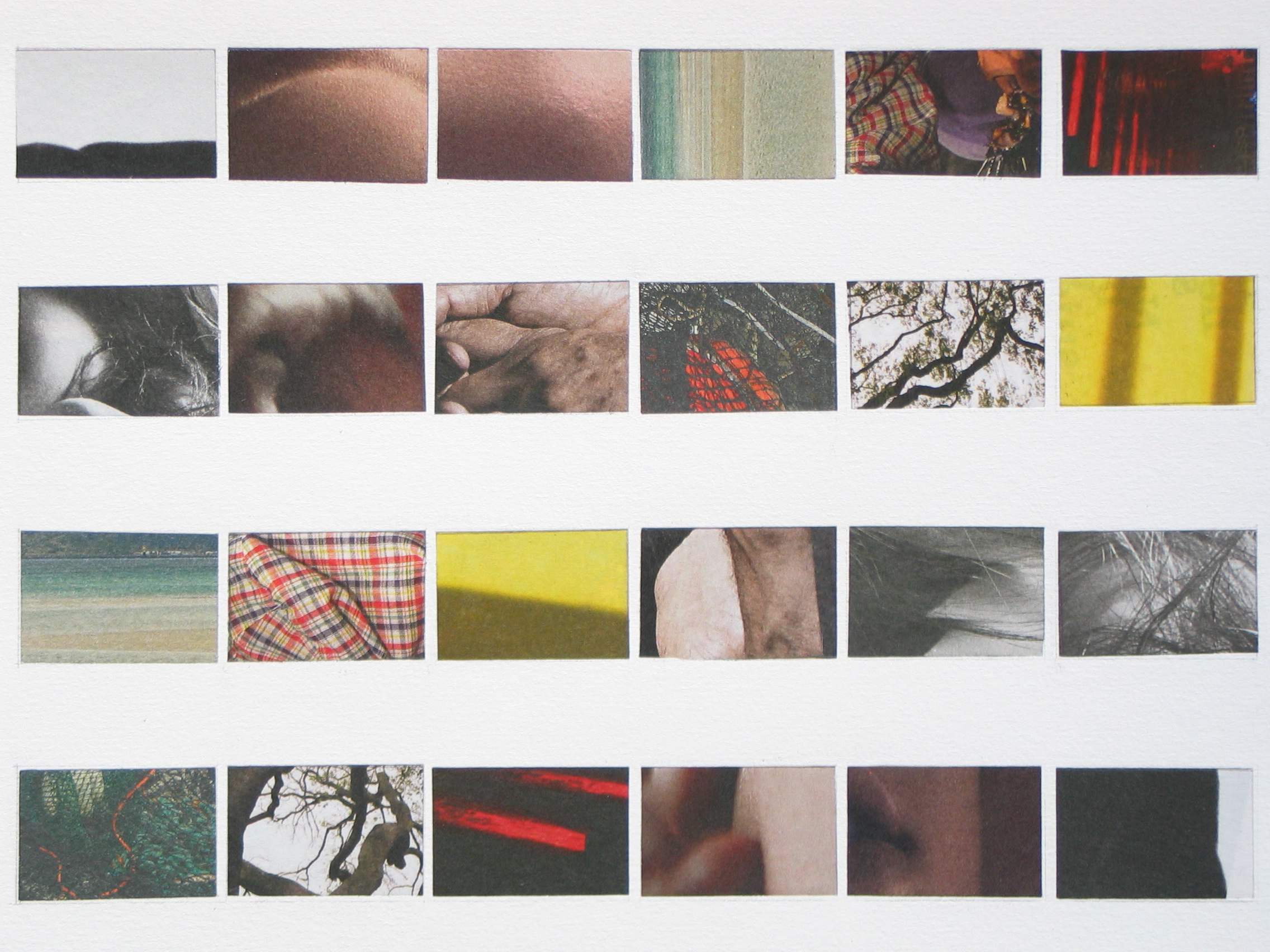 La planche contact du mois : exercice réalisé à l’aide de 24 rectangles de 24 x 36 mm prélevés dans le supplément M #07, supplément au Monde n°20 149 et daté du jeudi 5 novembre 2009 et collés sur une feuille à la manière d’une planche contact.