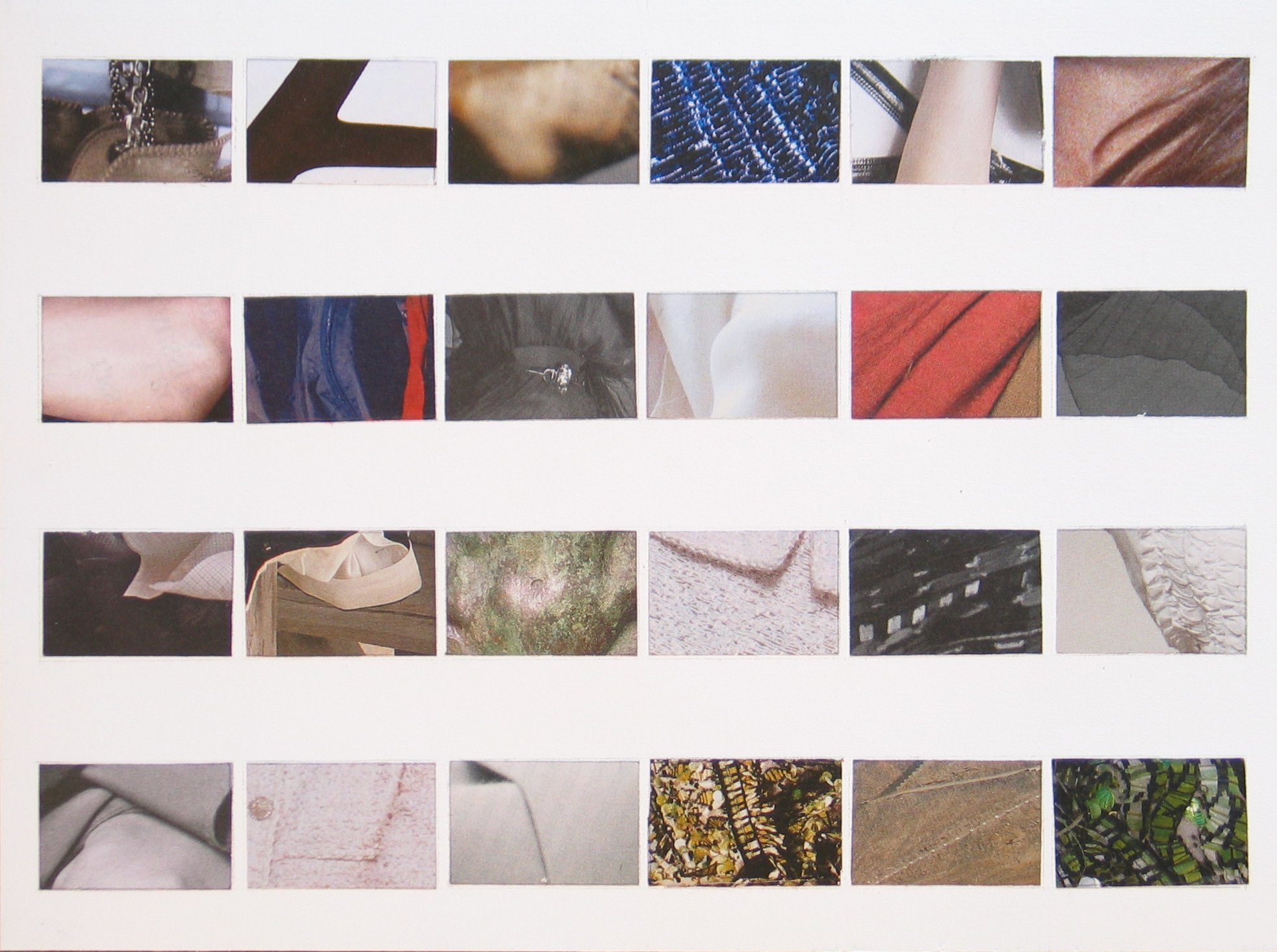 La planche contact du mois : exercice réalisé à l’aide de 24 rectangles de 24 x 36 mm prélevés dans le supplément M #10, supplément au Monde n°20251 daté du jeudi 4 mars 2010 et collés sur une feuille à la manière d’une planche contact.