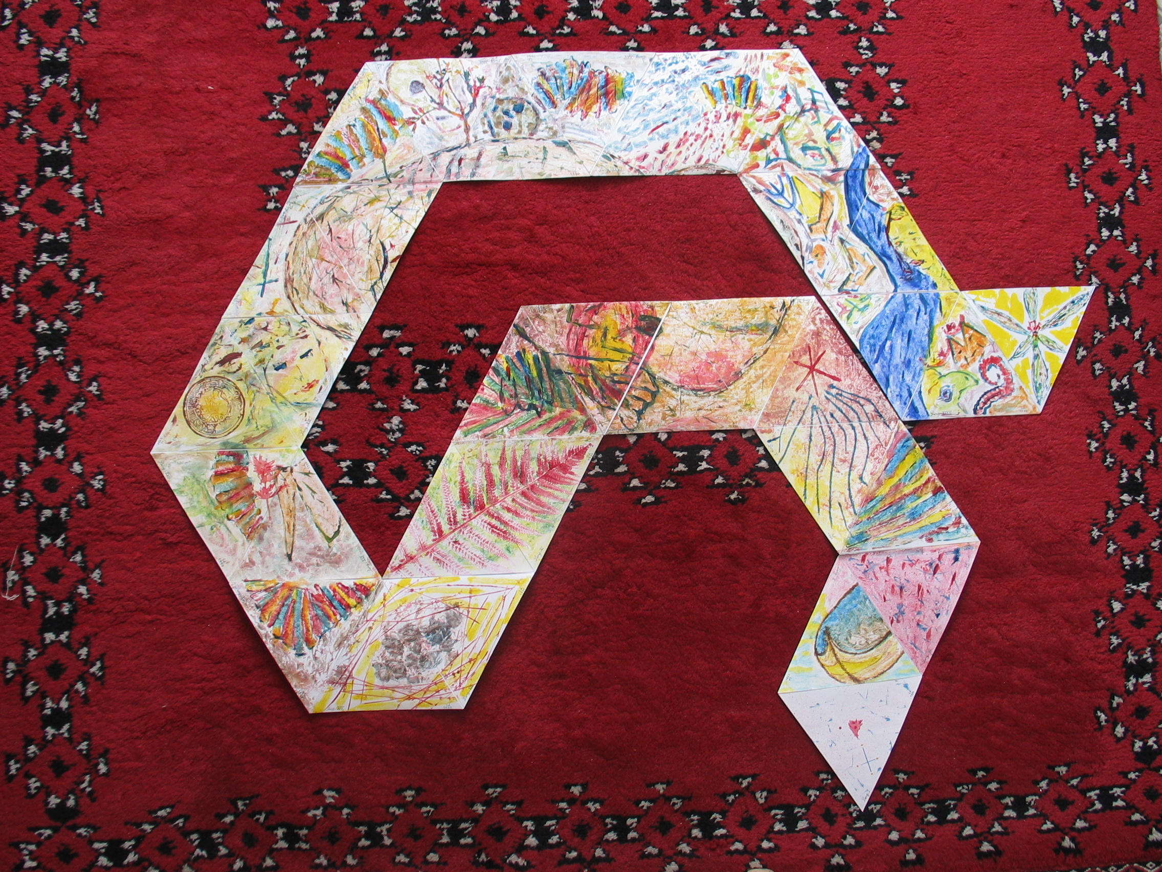 Pour la réalisation, j’ai employé des éléments naturels mêlés à quelques débris de la civilisation et l’utilisation d’instruments plus classiques comme des pinceaux…