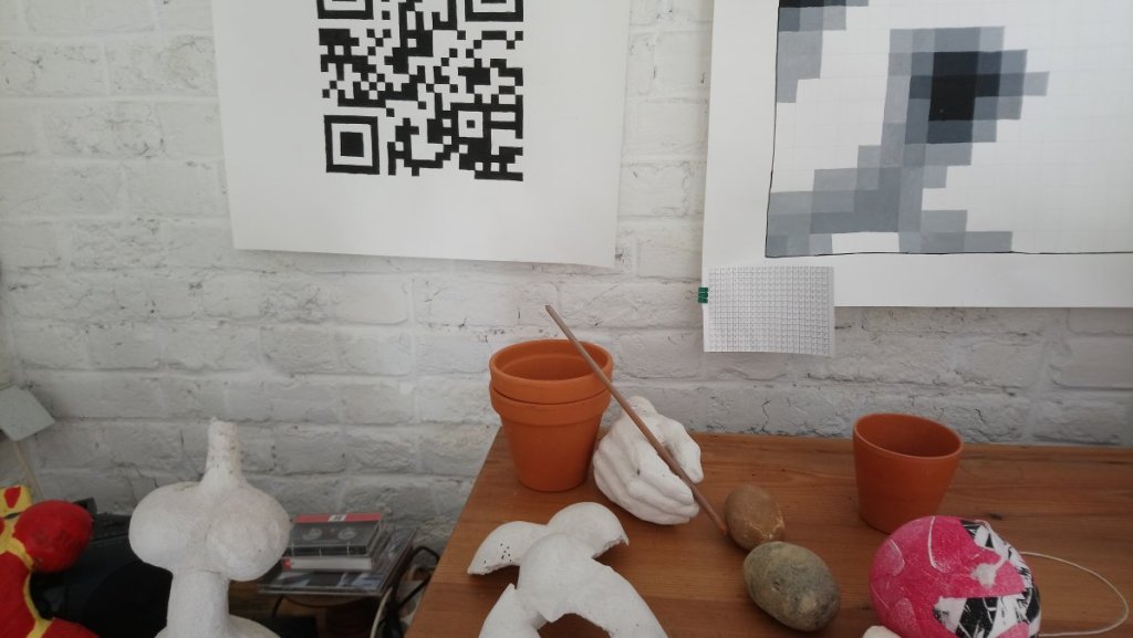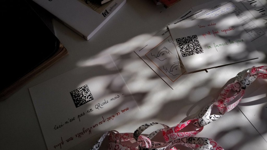 Le parcours dans l’atelier est balisé, ponctué de QRcodes, grilles à décrypter, signes de ponctuation … codes à tout faire.