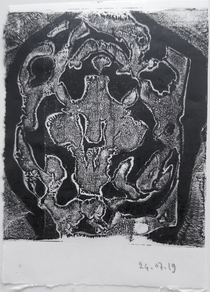 24 juillet 201924 juillet 2019 Lucien Dujardin Comme cela ne se voit pas … Comme cela ne se voit pas, ce monotype à été obtenu à partir d’une tête osseuse de chat … Chacun peut y voir ce qu’il veut. Fantasme Partager : Partager sur X(ouvre dans une nouvelle fenêtre) X Partager sur Facebook(ouvre dans une nouvelle fenêtre) Facebook J’aime chargement… Similaire