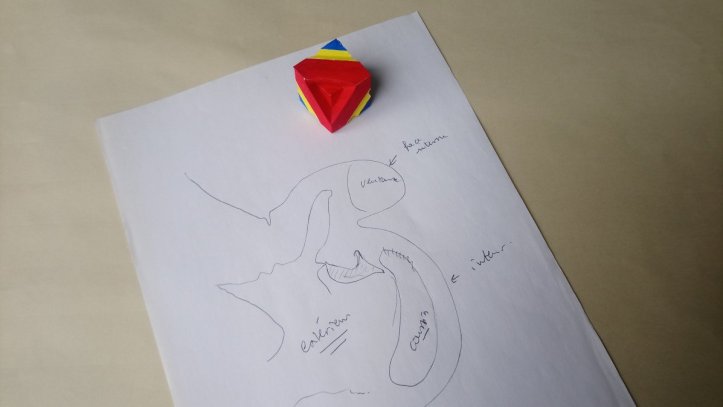 Le dessin provient de mes archives professionnelles : c’est l’étude du mécanisme d’invagination / dévagination du rostre d’un ver parasite, Cysticercus fasciolaris qui vit chez la souris. Lorsque le chat mange la souris, elle meurt, le parasite survit et se métamorphose en Taenia taeniaeformis.
